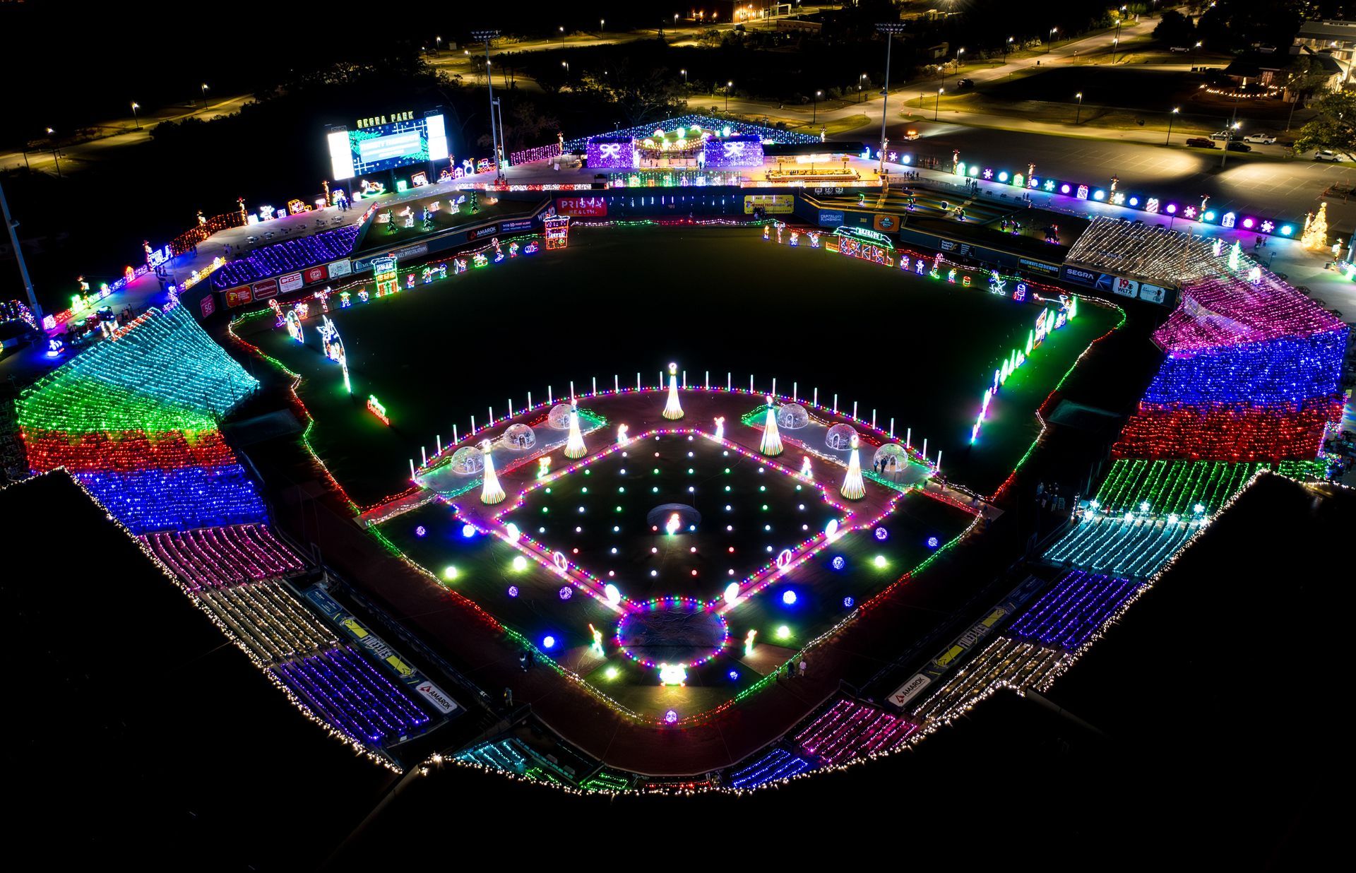 Not a drive thru but walk thru a twinkling wonderland in the friendly confines. More than 1,000,000 synchronized lights and displays wrap the home of the Skycarp field, and stands making the holiday night sky electric and memorable. Or just sit back in one of the warming domes and watch the show unfold in multi-hued brilliance all around you. If that's not enough festive excitement there is holiday train rides, craft stations, letters to Santa, festive food and drinks, cozy fire pits.