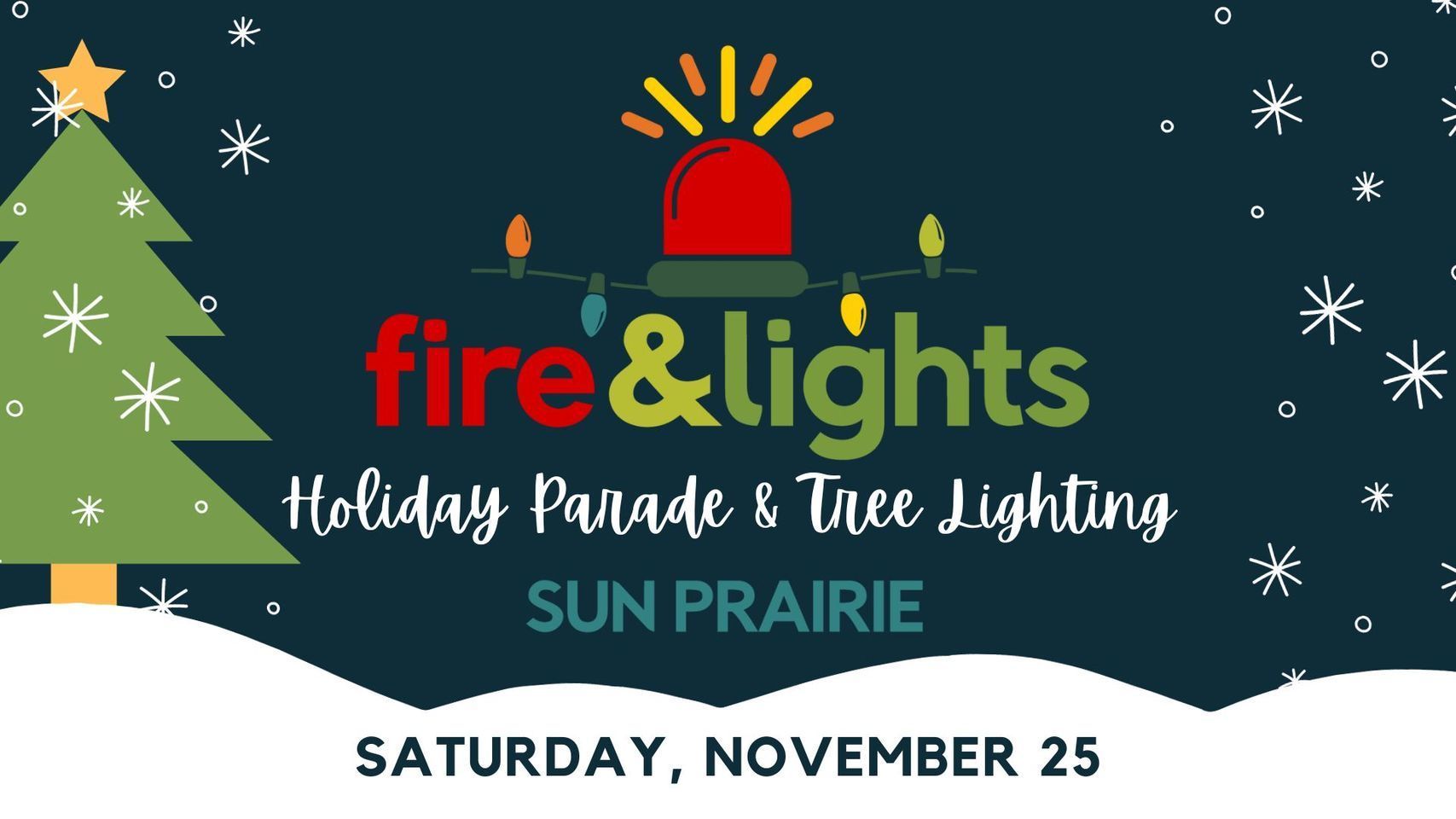 Saturday, November 25, 2023 Join us in Downtown Sun Prairie for the annual Fire and Lights Holiday Parade followed by the tree lighting in front of the Sun Prairie Historical Library & Museum (SPHL&M)! And special guest appearance from Santa Clause! This event is a partnership between the Sun Prairie Fire & Rescue and the Historical Library & Museum.